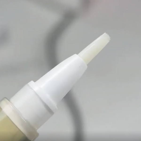 Gold cuticle serum pen with argan oil, plant collagen, raspberry seed, and jojoba oil.
