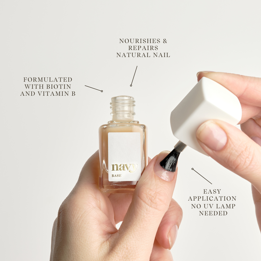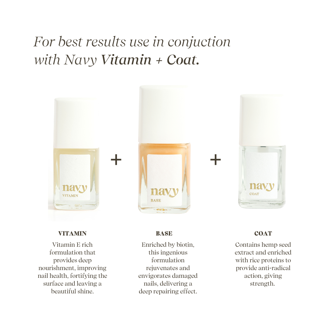Introducing Navy Base, your go-to treatment for stressed, weak, or damaged nails. Expertly formulated to nourish, repair, and strengthen, this restorative base coat is the ideal foundation for any manicure or pedicure—whether worn alone, under colour, or beneath a simple top coat.