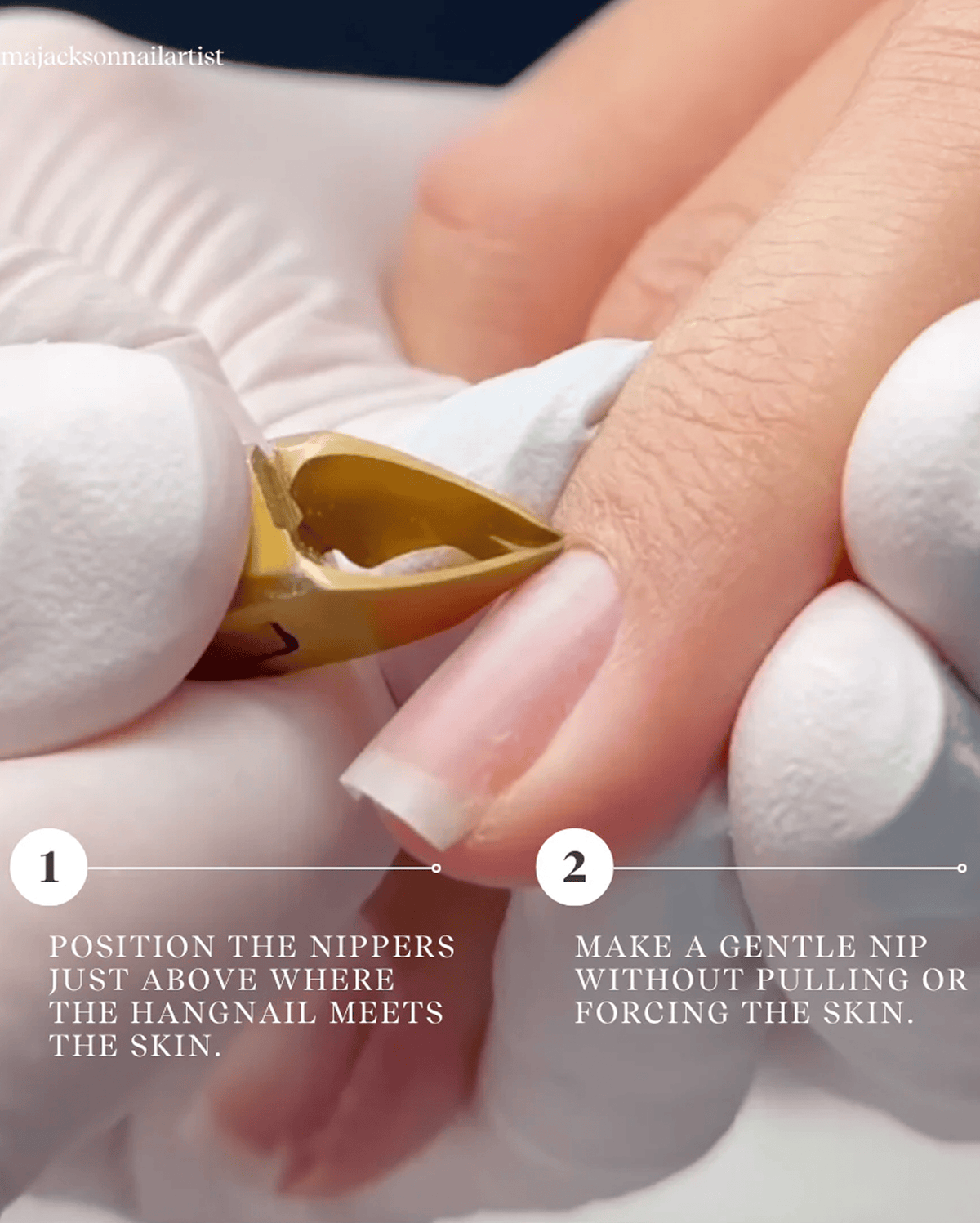 ・Position above hangnails, nip carefully without forcing.