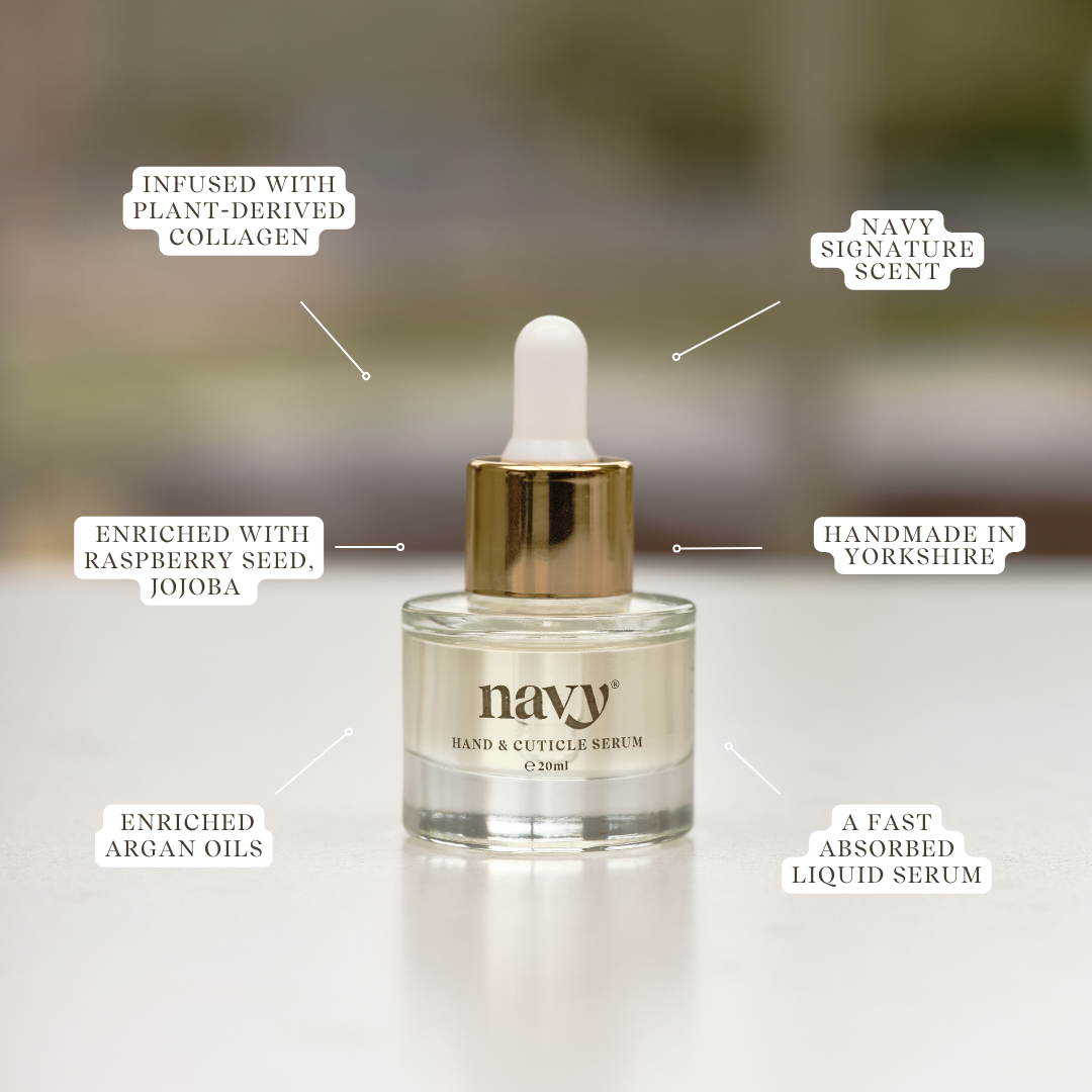 Indulge in our best-selling Hand & Cuticle Serum, expertly formulated to deliver intense hydration, repair, and protection for your hands and cuticles. Infused with plant-derived collagen, this luxurious serum deeply nourishes and rejuvenates, leaving your skin feeling irresistibly soft, smooth, and visibly healthier.